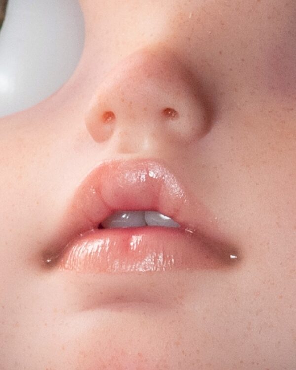 – Open mouth with teeth inside. Semi glossy lips